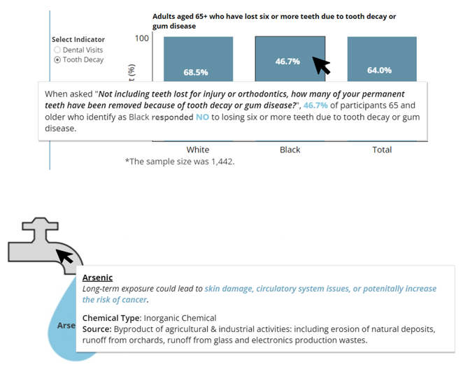 To view additional information about a graphic, hover over the graphic and additional information, if available will appear in a pop-up box.